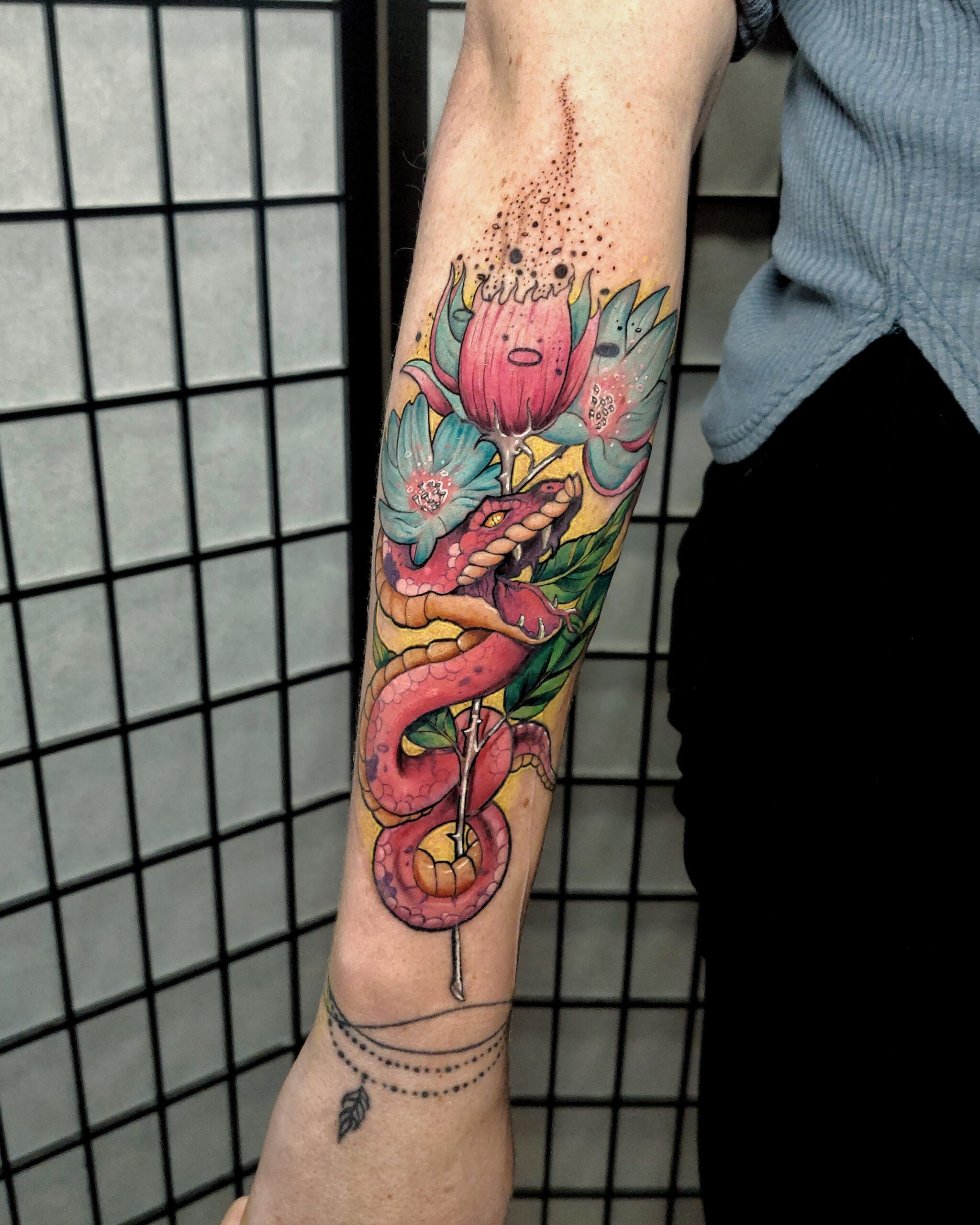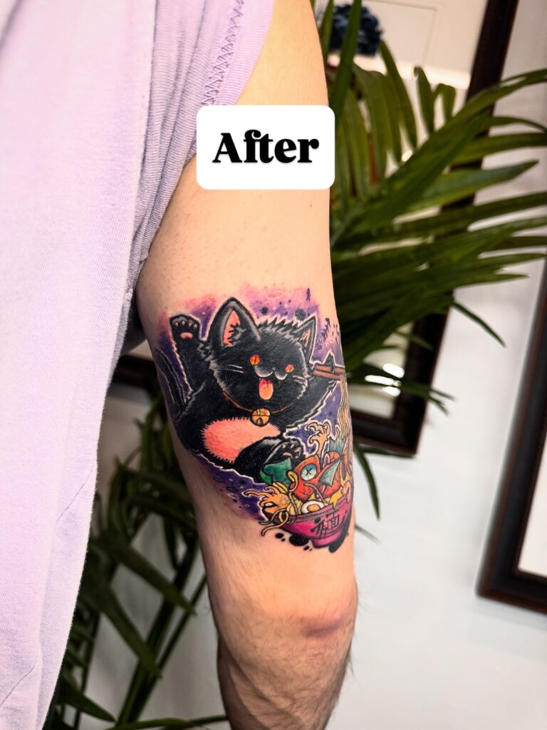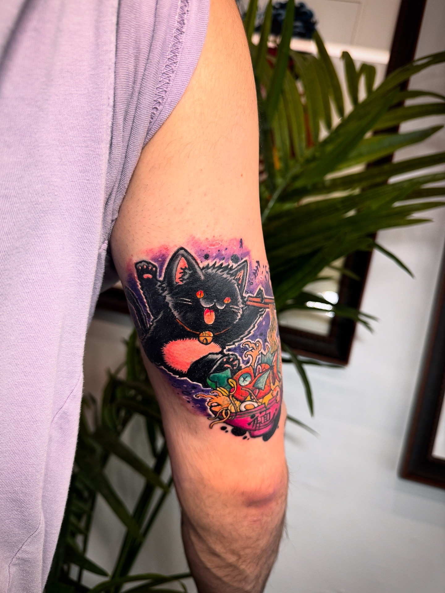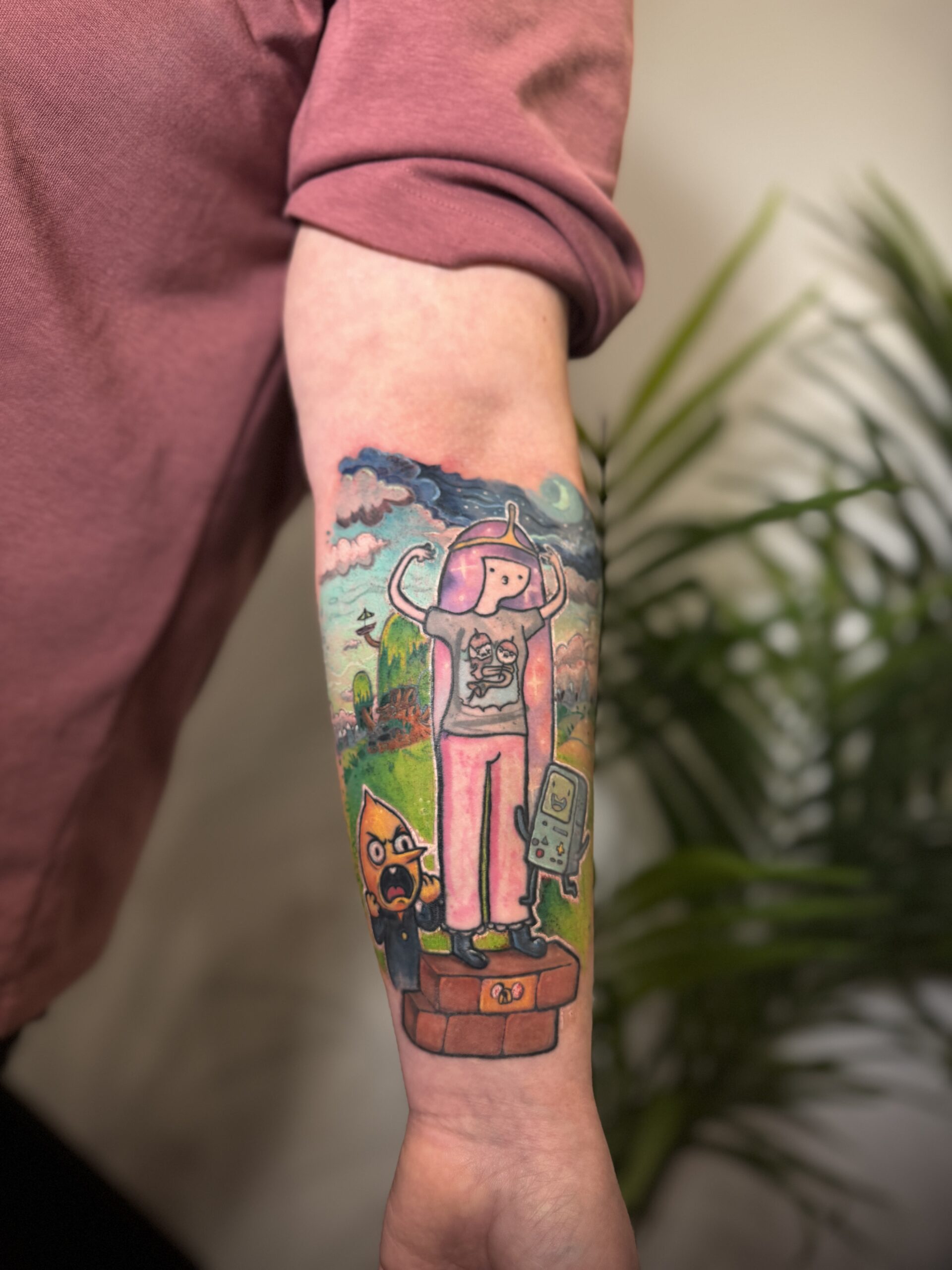 My style is defined by the use of color, illustration, and strong New School and cartoon influences, while remaining versatile across different styles depending on the project. Every tattoo begins with a hand-drawn concept, placing strong emphasis on the creative process and the individuality of each piece.